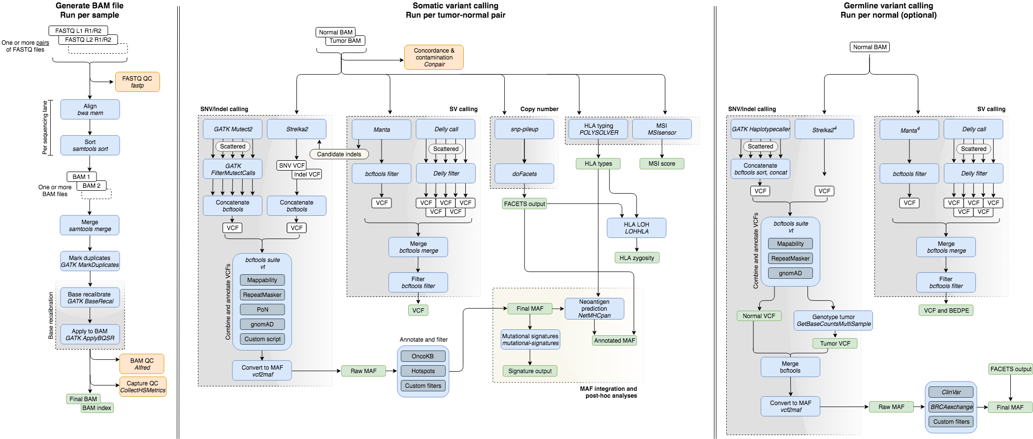 Tempo is a computational pipeline for processing data of paired-end whole-exome (WES) and whole-genome sequencing (WGS) of human cancer samples with matched normals. Its components are containerized and the pipeline runs on the Juno high-performance computing cluster (opens new window) at Memorial Sloan Kettering Cancer Center and on Amazon Web Services (AWS) (opens new window). The pipeline was written by members of the Center for Molecular Oncology (opens new window).